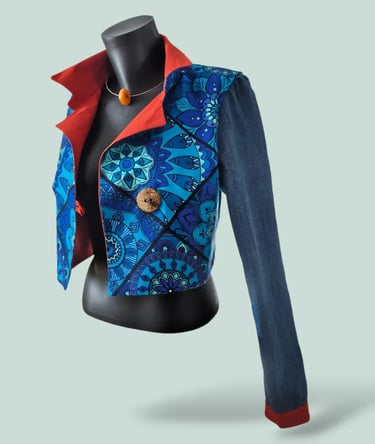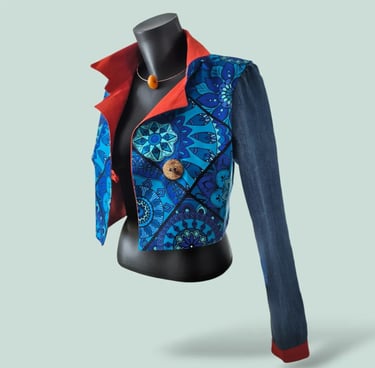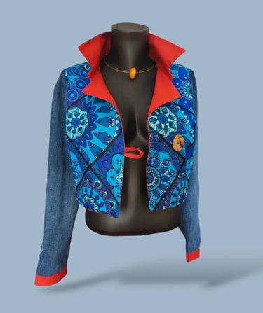 Ceci est une veste courte, en bachette, doublée d'un doux coton fleuri...
